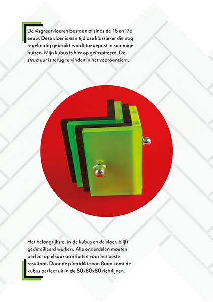 In de eerste periode van het tweede leerjaar kregen we de opdracht van het kubus project. Om te beginnen moesten we gaan oefenen met materialen die we thuis hadden liggen en daar 3 kubussen van maken. Deze hadden een paar eisen om aan te voldoen, maar de belangrijkste was dat hij binnen de maten 80mm x 80mm x 80mm bleef. Vervolgens was de bedoeling dat we 3 kubussen op school gingen maken. Deze moeten van hoge kwaliteit zijn en voldoen aan een aantal eisen. Zo moeten de verbindingen interessant zijn, zodat als er 1 onderdeel wordt weggenomen, het geen geheel meer is. Overige verbindingen zoals schroeven moeten dan complementair werken aan het model. Lijmen was ten strengste verboden. Deze 3 kubussen zijn uitgewerkt in 3 flyers en zouden samen goed genoeg moeten zijn om tentoongesteld te worden in een museum.
