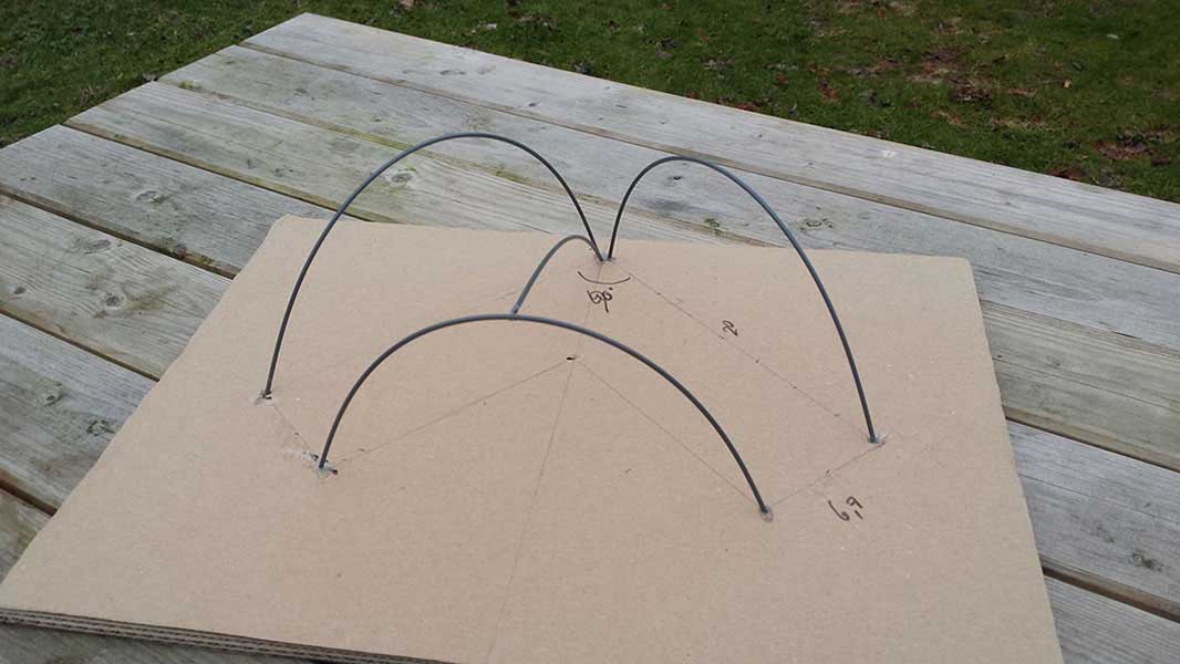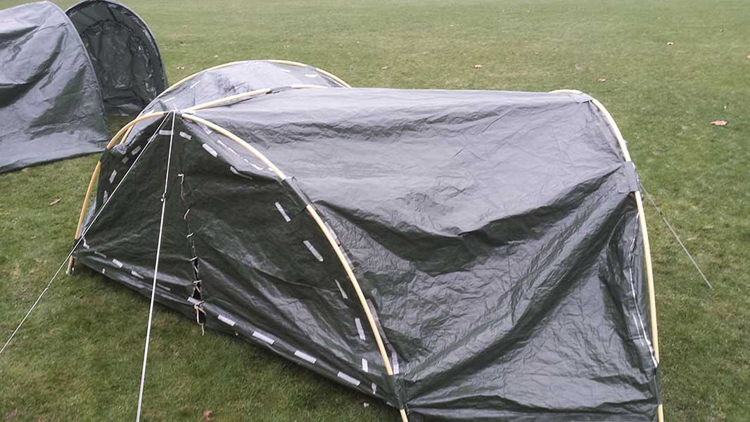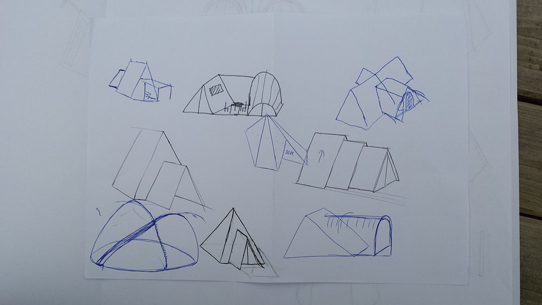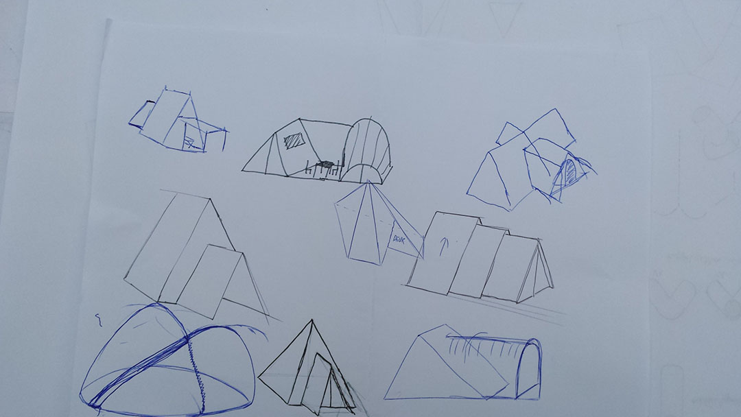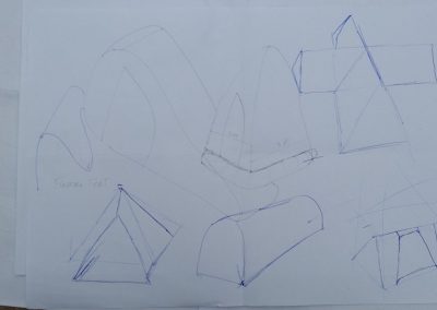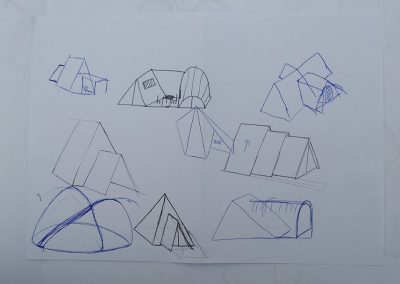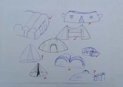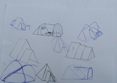 We zijn gebleven bij deze constructie en zijn dit verder gaan uitwerken. Dit is het modelletje voor het eindproduct en zijn hier stof op gaan naaien om te oefenen met de naaimachine.